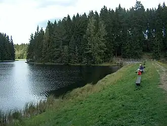 1935 bis 1937 wurde der Stausee zum Hochwasserschutz erbaut.