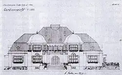 Das Pförtnerhaus entstand als erstes Bauwerk des Ensembles im Jahr 1910. Der erste Bau wurde 1922 nach Plänen von Rudolf Jäger (Wien) erweitert, 1931 folgte ein weiterer Umbau.