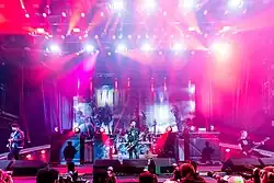 Es folgten Festivalauftritte bei Rock am Ring/Rock im Park, Graspop Metal Festival und Nova Rock, im Herbst 2016 folgte eine Europatournee mit den Vorgruppen Airbourne und Crobot, bevor Volbeat im Sommer 2017 gemeinsam mit Avenged Sevenfold und Gojira im Vorprogramm von Metallica eine Stadiontournee durch Nordamerika spielten. Beim Wacken Open Air spielte die Band ihren einzigen deutschen Festivalauftritt 2017.[41] Am 26. August 2017 spielte die Band im Kopenhagener Stadion Parken. Mit über 48.250 Zuschauern konnten Volbeat als erste dänische Band das Stadion ausverkaufen. Als Gäste traten unter anderem Lars Ulrich (Metallica), Mille Petrozza (Kreator) und Barney Greenway von der Band Napalm Death auf.[42] Ein Mitschnitt des Konzerts wird am 14. Dezember 2018 als DVD unter dem Titel Let’s Boogie! Live from Telia Parken veröffentlicht.