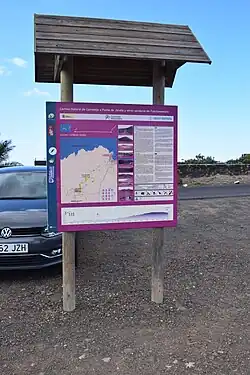 - ↑ Wandertafel in Lajares, gesehen am 25. Februar 2018.