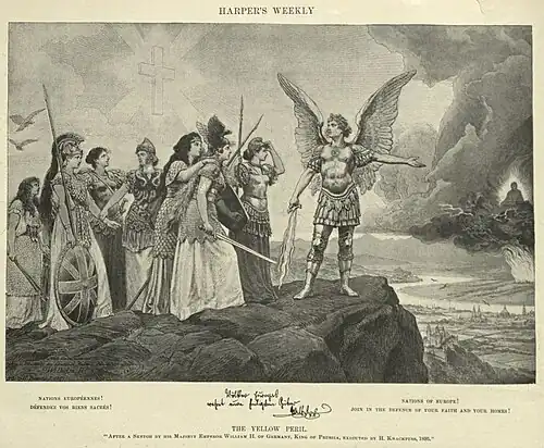 Der Alldeutsche Verband forderte 1894 eine „nationale Zusammenfassung des gesamten deutschen Volkstums in Mitteleuropa, d. h. die schließliche Herstellung Großdeutschlands“. Dies sollte der Kern eines Kolonialreichs in Übersee werden. Heinrich Claß, der 1908 den Vorsitz des Verbands übernahm, radikalisierte dessen Propaganda weiter, die sich „allein an dem Bedürfnis des deutschen Volkes“ zu orientieren hätte. Dabei fasste er auch „völkische Feldbereinigungen“ ins Auge.[37] Durch die rassistische Auslegung des Volksbegriffs durch die völkische Bewegung wurde es Minderheiten wie Juden und Polen unmöglich gemacht, sich zu assimilieren.[101] Völkische Publizisten wie Willibald Hentschel (1858–1947) entwickelten den Mythos eines Herrenvolkes, das sich in einem langen Prozess von Zuchtwahl, Auslese und Umweltanpassung gebildet habe: die Arier.[102] Dieser Mythos wurde später von den Nationalsozialisten aufgegriffen.[103]