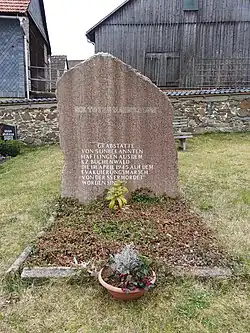 - Auf dem Ortsfriedhof erinnert eine Grabstätte mit Gedenkstein an fünf KZ-Häftlinge, die bei einem Todesmarsch aus dem KZ Buchenwald im April 1945 von SS-Männern ermordet wurden. Die in einer Parkanlage neben dem Kulturhaus befindliche Todesmarsch-Stele wurde nach 1989 umgewidmet für alle Weltkriegstoten.