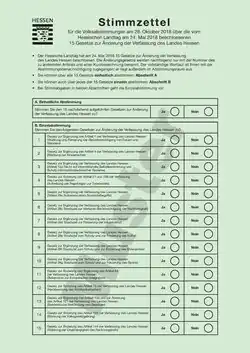 - ↑ Landtag beschließt Reform – Bürger dürfen über 15 Verfassungsänderungen abstimmen. In: hessenschau.de. 24. Mai 2018, abgerufen am 29. Oktober 2018.
