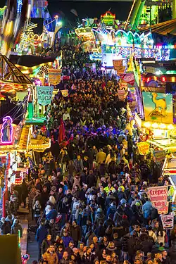 | Cranger Kirmes | 4.200.000 | 2024 | Herne | 11 | 381.818 | 11,1 | Schätzung[4] (laut eigener Aussage größtes Volksfest in NRW) |