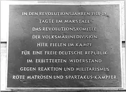 Mit Ausbruch der Novemberrevolution am 9. November 1918 wurde Graf Hermann Wolff-Metternich durch Friedrich Ebert mit der Aufstellung einer „Sicherheitswehr zum Schutze des Stadtzentrums und der Regierungsgebäude“ beauftragt.[2] Am 11. November gründete sich im Marstall die Volksmarinedivision, die der spätere Divisionskommandeur Fritz Radtke in seinen Tagebuchaufzeichnungen als Organisation bezeichnet, „die für Ruhe und Ordnung sorgen soll“. Radtke wird zum Kommandanten des Marstalls gewählt.[3] Wenige Tage später, am 14. November 1918 kam es nach einer Unterredung mit Wolff-Metternich und dem sozialdemokratischen Berliner Stadtkommandanten Otto Wels mit Korvettenkapitän Friedrich Brettschneider zu einem Anschlag auf die revolutionäre Divisionsführung, bei dem der Kommandeur Paul Wieczorek erschossen wurde. Weitere Mitglieder der Führung blieben unverletzt. Wenige Stunden danach wurde der Cuxhavener Matrose Otto Tost zum neuen Kommandeur der Volksmarinedivision gewählt.