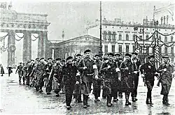 Bei den Märzkämpfen wurden am 5. März 1919 die Reste der Volksmarinedivision zum Entsatz der im Polizeipräsidium eingeschlossenen Regierungstruppen befohlen. Die dort verschanzten Einheiten hielten die Division jedoch für Gegner und eröffneten das Feuer. Die Matrosen schossen zurück und schlossen sich den Aufständischen an. Die Regierungstruppen gingen mit Brutalität gegen ihre Gegner vor. Ein Oberleutnant Otto Marloh allein ließ etwa 30 Matrosen erschießen.[11] Die Republikanische Soldatenwehr und mit ihr die Volksmarinedivision wurden daraufhin aufgelöst.