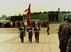 Das zur Hohenschönhauser Straße immer flacher auslaufende Gebiet wurde in der zweiten Hälfte der 1980er Jahre umgestaltet. Am 1987 errichteten Denkmal für die Kampfgruppen der Arbeiterklasse, gestaltet vom Bildhauer Gerhard Rommel[4] wurden Ehrenappelle an Staatsfeiertagen veranstaltet. Das Denkmal wurde nach der deutschen Wiedervereinigung demontiert. Aus Sandsteinresten der Treppenanlage wurde das Eingangstor des Volksparks aufgestellt.[5]