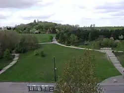 Der Volkspark Prenzlauer Berg – entstanden aus der früheren Oderbruchkippe – ist eine rund 29 Hektar große Parkanlage am östlichen Rand des Bezirks Pankow, Ortsteil Prenzlauer Berg. Den wesentlichen Bestandteil des Parks bildet ein Trümmerberg-Doppelgipfel, der an seiner höchsten Stelle (genannt: „Pappelplateau“) 90,9 m ü. NHN[1] hoch ist. Der andere Gipfel, mehr zur Hohenschönhauser Straße hin gelegen, heißt zwar „Hohes Plateau“ und auf einer steinernen Markierung steht, er sei „die höchste Erhebung in Prenzlauer Berg“, was aber ungenau ist. Denn nach Vermessungen in den 1990er Jahren ist er nur 89 m hoch. Die Gipfelzwillinge gehören zu den höheren Erhebungen Berlins.