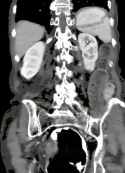 Bei Erwachsenen wird häufig beim Bild eines akuten Abdomens auch die Computertomographie eingesetzt. Als typisches Zeichen neben der massiven Überblähung beim Volvulus kann hiermit auch die Drehung der Mesenterialwurzel mit ihren Gefäßen (Whirlpool-Zeichen) gezeigt werden.