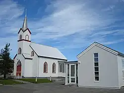 Die Pfarrkirche datiert von 1902 und hat unter anderem ein Altarbild von Jóhannes Sveinsson Kjarval vorzuweisen.[3]
