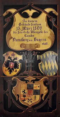 Nach der österreichischen Niederlage in der Schlacht bei Austerlitz im Rahmen des Dritten Koalitionskriegs gegen Frankreich musste Österreich beim Frieden von Pressburg seine beiden vorderösterreichischen Besitzungen Tirol und Vorarlberg an den französischen Koalitionspartner Bayern, das im selben Zug vom Kurfürstentum zum Königreich aufstieg, abtreten. Somit kamen die „sieben Herrschaften im Vorarlbergischen mit ihren Inklavierungen“ – im Wesentlichen also das Gebiet des heutigen Landes Vorarlberg – im Jahr 1806 unter bayerische Herrschaft. Es handelte sich dabei um die zuvor habsburgisch kontrollierten Herrschaften Neuburg, Feldkirch, Bludenz, Bregenz samt Hohenegg, Sonnenberg, Hohenems und Blumenegg.[1]