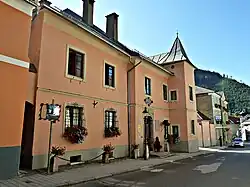 - Das Rathaus ist mit einem runden Eckturm ausgestattet, und enthält unter anderem eine Stuckdecke aus 1720. Es war einst der Sitz der Gewerkenfamilie Schachner.