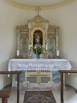 Im Altar aus der Erbauungszeit ist eine Skulptur der Pietà aufgestellt.