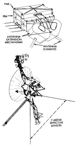Dieses Instrument fällt besonders durch seine beiden 10 Meter langen Antennen auf, die im rechten Winkel von der zentralen Zelle wegführen. Sie haben einen Durchmesser von je 1,27 cm und sind aus Berylliumkupfer gefertigt. Das PWS benutzt sie als Dipolantenne, die eine effektive Länge von 7 m hat. Das Instrument untersucht die Wechselwirkungen von Teilchen mit den Magnetfeldern der Planeten und die elektrische Komponente von Plasmawellen im Frequenzbereich von 15 Hz bis 56 kHz. Der Empfänger (mit vorgeschaltetem 40-dB-Verstärker) bietet 16 verschiedene Kanäle, wobei vorher ein Rauschfilter die Störungen durch die Wechselspannung der Bordsysteme bei 2,4 und 7,2 kHz eliminiert.[3]