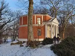 Nach dem Vorbild des Pantheon in Rom um 1795 nach Plänen von Erdmannsdorff errichtet, steht es auf der Flussseite des Hochwasserwalls. Zum Untergeschoss führt ein den Wall unterquerender Grottengang. Es birgt eine Kanope, die als Symbol des Elbflusses (miss-)verstanden wurde, Reliefs des Anubis, der Osiris und des Harpokrates sowie eine Statue der Isis. Sie wurden von Friedrich Wilhelm Eugen Döll geschaffen und gehören zu den frühesten nach altägyptischen Vorlagen geschaffenen Kunstwerken in Deutschland. Im vom Wall aus zugänglichen Erdgeschoss sind eigens für dieses Gebäude in Italien gekaufte antike Statuen des Apollon und der neun Musen aufgestellt. Im Obergeschoss waren früher große Teile der Antikensammlung des Fürsten untergebracht.
