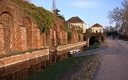 - Die Klappbrücke ist eine kleine, nach niederländischem Vorbild aufklappbare Brücke über den Schwanenteich nahe beim Schloss.