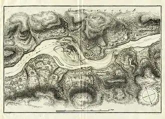 Ruine Werfenstein und Insel Wörth 1674. Von Westen -