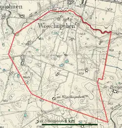 Die Gemeinde Wöschupchen auf einem Messtischblatt von 1937