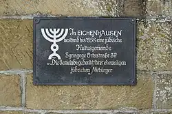 Mindestens seit dem 19. Jahrhundert waren im Gemeindeteil Eichenhausen jüdische Familien ansässig, die sich in der Ortsstraße 37 ihre Synagoge errichteten. Diese wurde beim Novemberpogrom 1938 durch SA-Männer zerstört, woran eine Erinnerungstafel am Kriegerdenkmal erinnert.[9]
