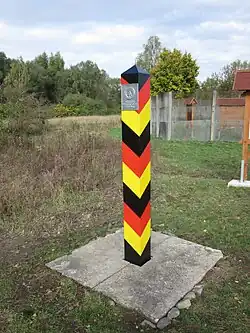 Nachgebildeter Grenzpfahl aus Stahl als Mahnmal