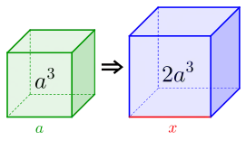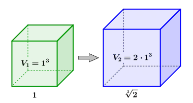 - Das Volumen des Würfels mit der Kantenlänge ist gleich dem doppelten Volumen des Ausgangswürfels mit der Kantenlänge