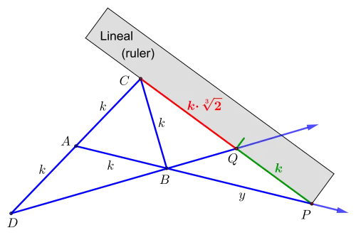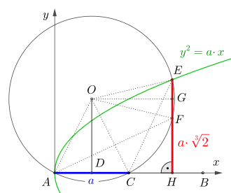 - ↑ Heinrich Dörrie: 35. The Delian Cube-doubling Problem. In: 100 Great Problems of Elementary Mathematics. New York, Dover Publications, Inc., 1965, S. 170–171, abgerufen am 5. Mai 2019.