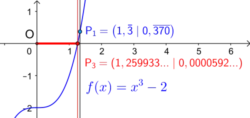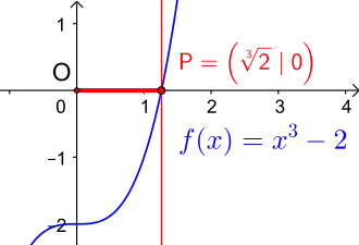 Einen Weg für sehr gute Näherungen ermöglicht das Newtonverfahren.[58] Im Folgenden wird es verwendet, um für die Würfelverdoppelung die reelle Nullstelle der Funktion