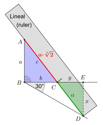Aus oben bereits beschriebenen Gründen kann das Ergebnis der Kubikwurzel nicht mit Zirkel und Lineal mit endlichen Konstruktionsschritten exakt dargestellt werden.