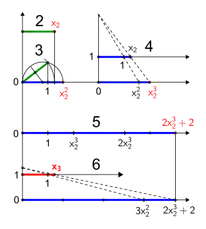 Weil der Ausdruck für nur die Grundrechenarten enthält, lässt sich das Ergebnis jedes Iterationsschritts als Strecke mit Zirkel und Lineal konstruieren.