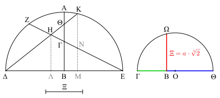 - ↑ Claas Lattmann: Mathematische Modellierung bei Platon zwischen Thales und Euklid, 5 Platon und das Delische Problem, 5.2.4 Fazit. Walter de Gruyter, Berlin/Boston 2019, S. 207, letzter Absatz (eingeschränkte Vorschau in der Google-Buchsuche)