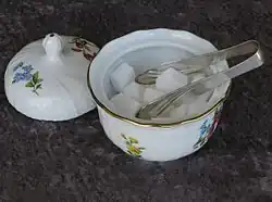 - ↑ Beschreibung auf einer Packung Würfelzucker von der Südzucker AG zu 500 g mit 168 Zuckerwürfeln