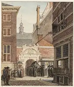 Im Jahr 1616 erhielt die Kirche an der Nordseite einen zusätzlichen Eingang mit einem Portal an der Oude Hoogstraat, das von Hendrick de Keyser entworfen wurde. Das Portal ist mit Totenköpfen verziert, ein Hinweis auf die Leichenzüge, die durch dieses Portal zogen. Das klassizistische Portal an der Fassade stammt aus dem Jahr 1647.
