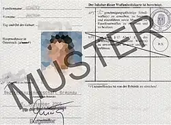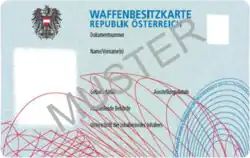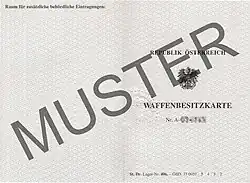 - ↑ Erwerb: Der Kauf einer genehmigungspflichtigen Waffe im Sinne des Waffengesetzes 1996 bei einem österreichischen Waffenhändler. Siehe auch Waffengesetz (Österreich)