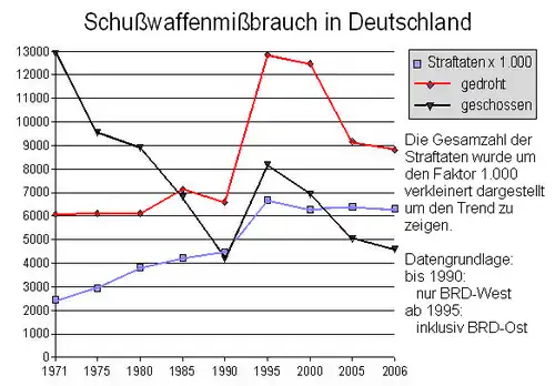 Seit 1971 hat sich die Zahl der Straftaten, auch bedingt durch die Wiedervereinigung, fast verdreifacht. Im gleichen Zeitraum sank der Missbrauch von Schusswaffen jedoch um fast ein Drittel.
