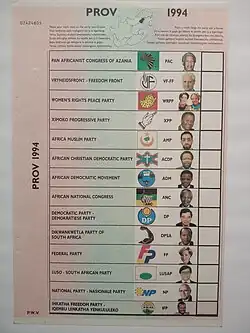 - ↑ The South African general elections: 1994. South African History Online (www.sahistory.org.za), abgerufen am 6. Juli 2024 (englisch).