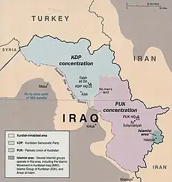 - ↑ Azad Salih: Freies Kurdistan. Die Schutzzone der Kurden in Irakisch-Kurdistan, Dissertation an der FU Berlin, 2004, 4. Kapitel, S. 108–110