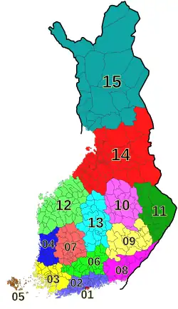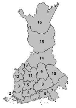 | Pirkanmaa | 12 | 12 | 13 | 13 | 13 | 13 | 13 | 13 | 15 | 16 | 16 | 18 | 18 | 18 | 19 | ||||||||||