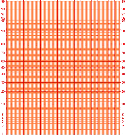 angezeigt. Ordnet man auf der Ordinate die Skalenstriche so an, dass rechnerisch die Abstände zwischen den Verteilungsfunktionswerten gleich groß sind, erhält man das typische Muster des Gaußschen Wahrscheinlichkeitsnetzes.