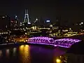 Nachts wird die Brücke mit Leuchtdioden illuminiert. Das soll zum einen die Brücke attraktiver machen, zum anderen Energie sparen.