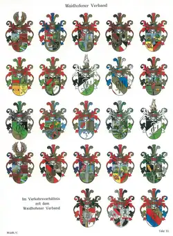 - ↑ a b Michael Wladika: Hitlers Vätergeneration. Die Ursprünge des Nationalsozialismus in der k. u. k. Monarchie. Böhlau, Wien/ Köln/ Weimar 2005, ISBN 3-205-77337-3, S. 226; Liste der wehrhaften Vereine in Paulgerhard Gladen, Kurt U. Bertrams: Die deutsch-völkischen Korporationsverbände. Deutsche Wehrschaft, Waidhofener Verband u. a. WJK-Verlag, Hilden 2009, ISBN 3-933892-11-2. S. 55 ff.