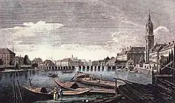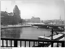- ↑ Waldemar Titzenthaler: Waisenbrücke. Links: Märkisches Museum im Bau. Im Vordergrund: Flussbadeanstalt. Landesarchiv Berlin, Bild 1907.