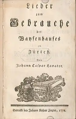 - Johann Kaspar Lavater: Christliches Handbüchlein oder auserlesene Stellen der Heiligen Schrift mit Versen begleitet, Zürich 1769.[7]