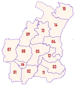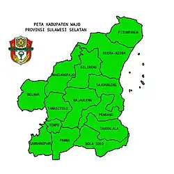 Der Bezirk Wajo besteht aus 14 Distrikten (Kecamatan), die sich in 190 Dörfer (idS|Desa) gliedern. Ein Viertel dieser Dörfer besitzt als Kelutrahan urbanen Charakter.