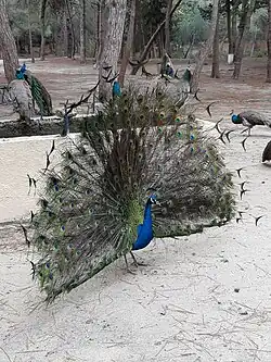 An der hier durchführenden Straße befindet sich ein Picknickplatz, an dem sich freilebende, recht zutrauliche Pfaue aufhalten. Daher wird der Wald auch Pfauenwald genannt. Mit den Pfauen zusammen leben hier auch viele Katzen. Bei einem kleinen Teich und nahen Feuchtgebiet finden sich freilebende Schildkröten.