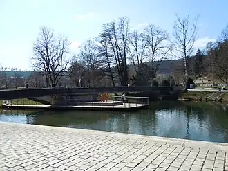 ![]() Mündung der Waldach (von links) in die Nagold (von unterm großen Stegbogen nach rechts) | ||