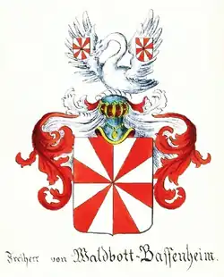 - ↑ Aufgeschworene Stammtafel der Linie Waldbott von Bassenheim. In: Arnold Robens: Der Ritterbürtige Landständische Adel des Großherzogthums Niederrhein, dargestellt in Wapen und Abstammungen. Selbstverlag, Aachen 1818, S. 72 ff.; Textarchiv – Internet Archive.