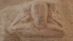 Das etwa 77 cm hohe Felsbild zeigt als Reliefbild eine menschliche Figur, die ihre Hände über den Kopf erhebt und auf deren rechten Schulter ein Vogel sitzt. Die Figur ist in ein langes Gewand gekleidet, unter dessen Saum noch zwei spitze Schuhe angedeutet sind. Der Fels zeigt außerdem eine sehr alte Einlassung, die wohl einst Teil einer Türkonstruktion war. Daher wird vermutet, dass die 60 Meter über dem Talgrund gelegene Felswand einst Behausung eines Eremiten war.