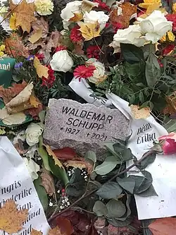 Waldemar Schupp (* 18. April 1927 in Leipzig; † 15. Oktober 2021 in Goslar) war ein deutscher Geschichtswissenschaftler. Er war bis 1960 Leiter der Zentralstelle für Genealogie in Leipzig, dann Direktor der Fachschule für Archivwesen in Potsdam bis 1990. Hier unterstützte er wissenschaftlich die Brauchtumspflege für Franz Mehring. Als Fachschulreferent unterrichtete er Verfassungs- und Verwaltungsgeschichte, Historische Hilfswissenschaften, vorher auch Geschichte der politischen Organisation der Gesellschaft.[1] Seine letzte Ruhestätte fand er auf dem Südwestkirchhof Stahnsdorf.