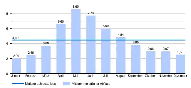 - ↑ Martin Pfaundler, Rolf Weingartner, Robert Diezig: „Versteckt hinter den Mittelwerten“ – die Variabilität des Abflussregimes. In: Hydrologie und Wasserbewirtschaftung (HyWa). Jg. 50, Heft 3, 2006, S. 116–123, hier Tabelle auf S. 119 (Download [PDF; 3,2 MB; abgerufen am 3. November 2024]). Abrufbar unter Gesamtes HyWa Heft 3, 2006..