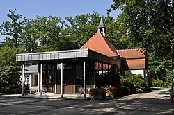 Vor dem Haupteingang zum Waldfriedhof am Kreuzweg befindet sich das eingeschossige Pförtnerhaus. Der Sockel ist in Bruchstein ausgeführt, das Haus selbst verputzt und mit gaubenbesetztem Zeltdach gedeckt. 1972 wurde er um einen Anbau nach Norden erweitert.